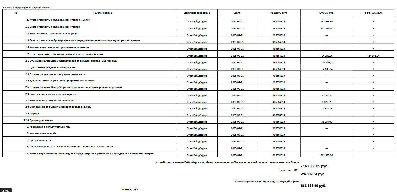 Из ЛК ВБ скачиваем Финансовые отчеты→Отчет